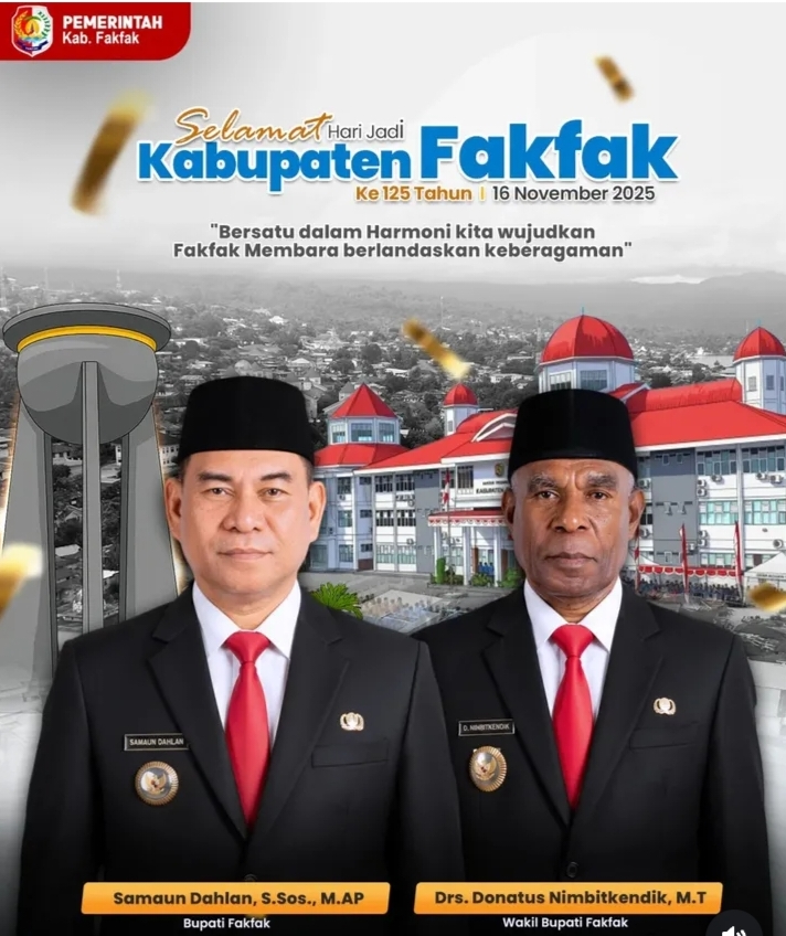 BeritaInfoJitu, Fakfak, Papua Barat — Kabupaten Fakfak memperingati Dirgahayu ke- 125 tahun dengan rangkaian acara meriah dan penuh makna yang dipusatkan di Alun-Alun Kota Fakfak. Peringatan tahun ini mengangkat semangat kebersamaan, kolaborasi, serta percepatan pembangunan daerah sebagai langkah menuju Fakfak yang lebih maju, mandiri, dan berdaya saing.